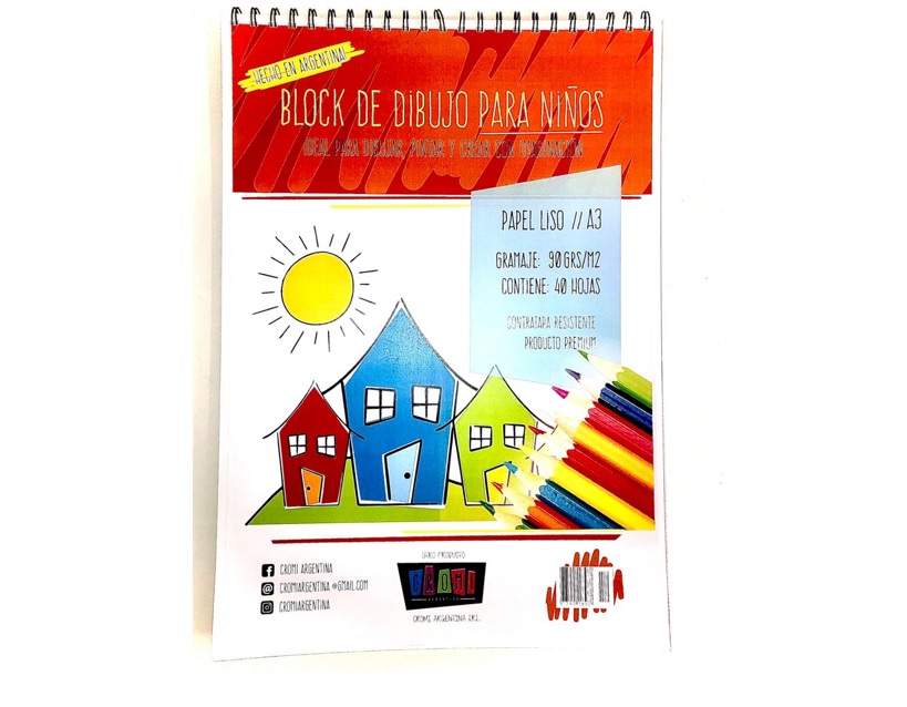 / BLOCK DE DIBUJO PARA NIÑOS CROMI A3 90 GR X 40H. ESPIRALADO