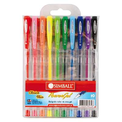 BOLIGRAFO SIMBALL POWER GEL/FLUO/GLITTER X 10U. V/COLORES cantidad