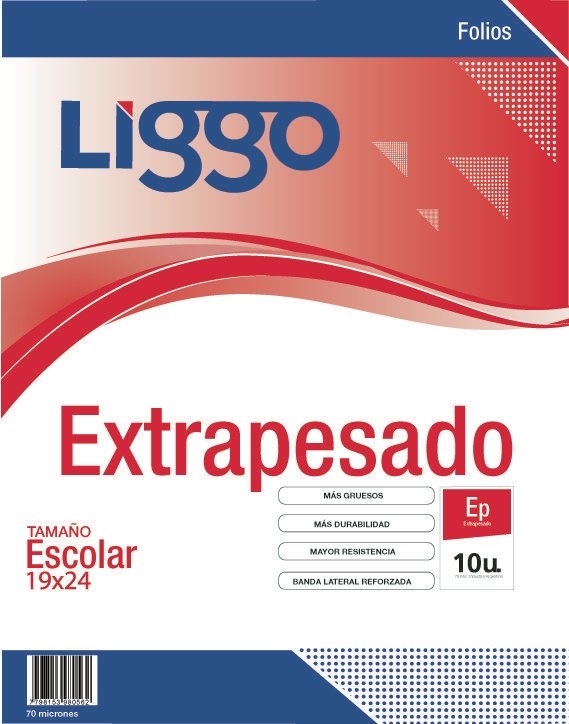FOLIO LIGGO ESCOLAR PLANO EXTRAPESADO 70MIC. X 10U. (350-1120) cantidad