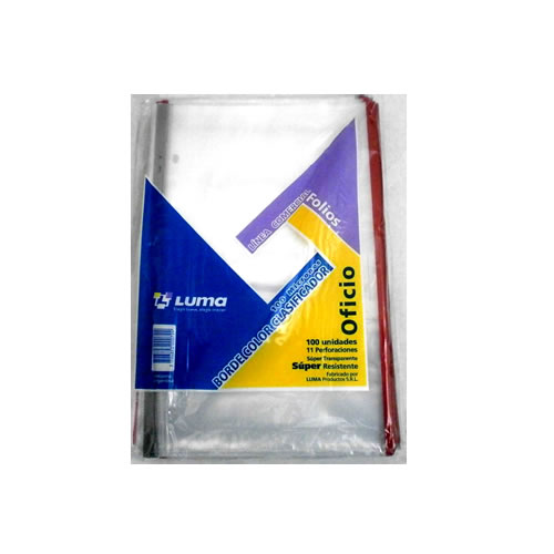 FOLIO LUMA OFICIO PESADO C/BORDE COLOR X100U. 31051 POLIETILENO cantidad