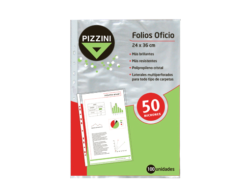 FOLIO PIZZINI EXTRA CRISTAL OFICIO PP 50MIC X 100U. DESPLEGADOS. (50FOX100)