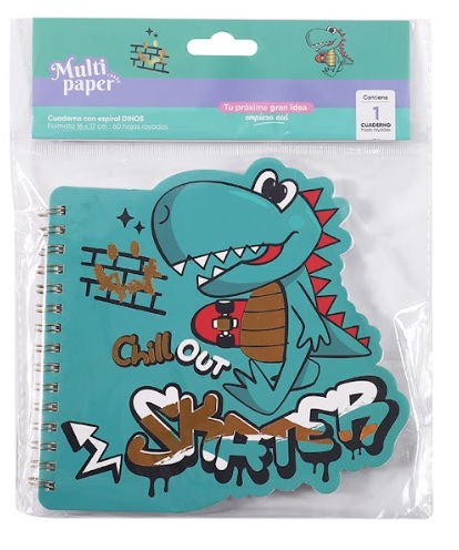 LIBRETA CON ESPIRAL MULTIPAPER DINO 13X13.5 CM 60HJS (26-57) cantidad