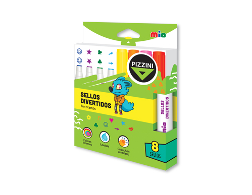 MARCADOR ESCOLAR PIZZINI X8U. C/SELLOS DIVERTIDOS (8100SDX8) cantidad