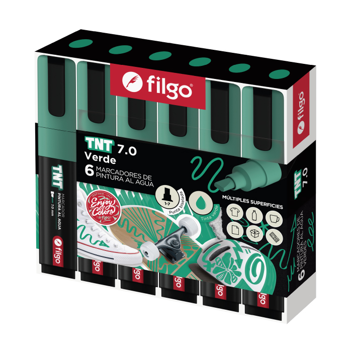 MARCADOR FILGO TNT PINTURA AL AGUA VERDE X6U C/U PUNTA BISELADA 7.0 (TNTM70-E6-004)