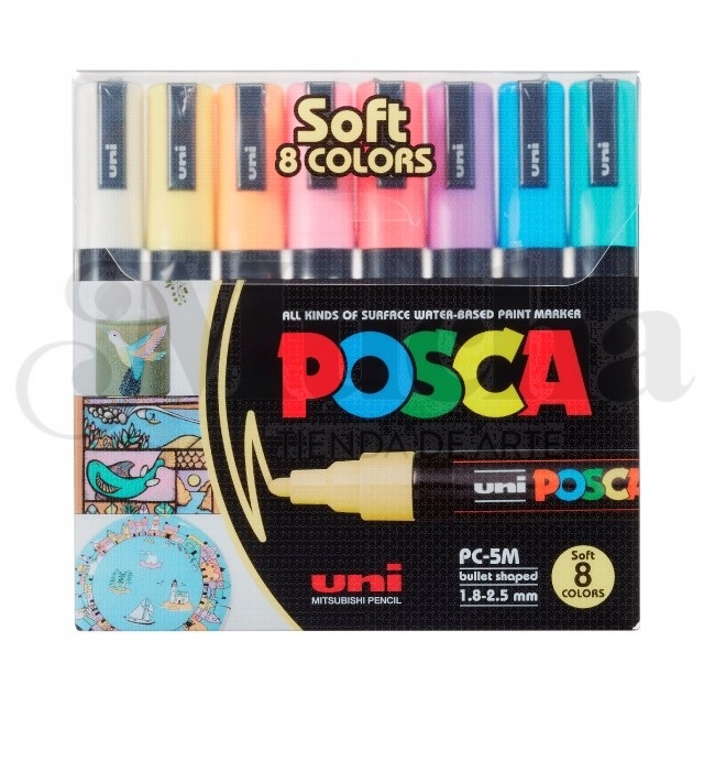 MARCADOR MITSUBISHI POSCA PC-5M PASTEL PUNTA CONICA X8U. cantidad