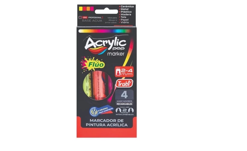 MARCADOR TRABI ACRYLIC POP 2-4 MM X 4U. FLUO (TR34089) cantidad
