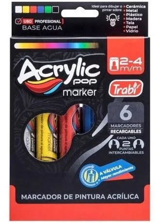 MARCADOR TRABI ACRYLIC POP 2-4MM SURTIDO X6U (36116)