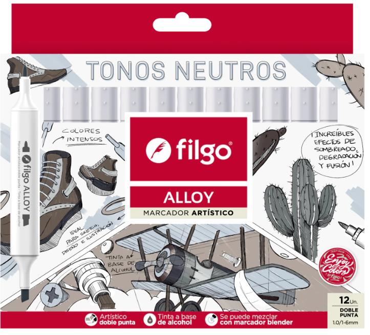 / MARCADORES FILGO ALLOY DOBLE PUNTA TONOS NEUTROS X12U (ALLYM-E12-GRIS)