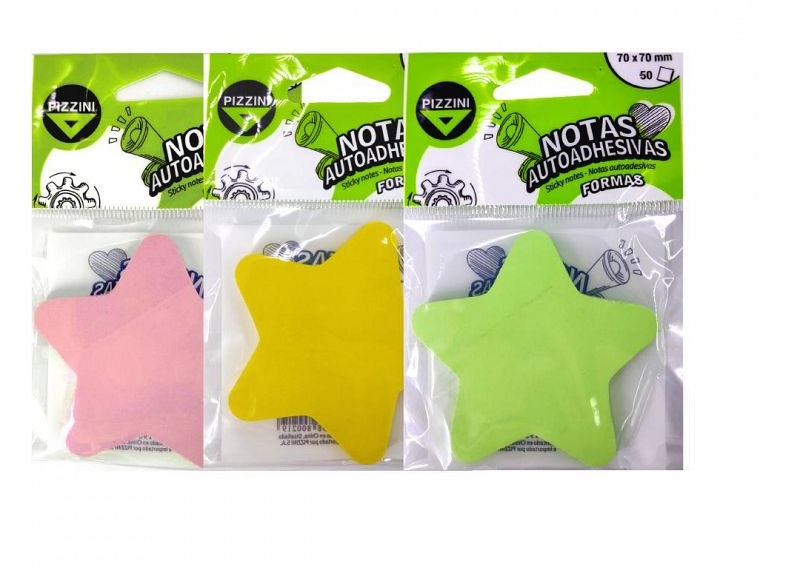 NOTAS ADHESIVAS PIZZINI ESTRELLA 70X70 PASTEL X 50 HJS. V/COLORES (NAESTREX1P-)