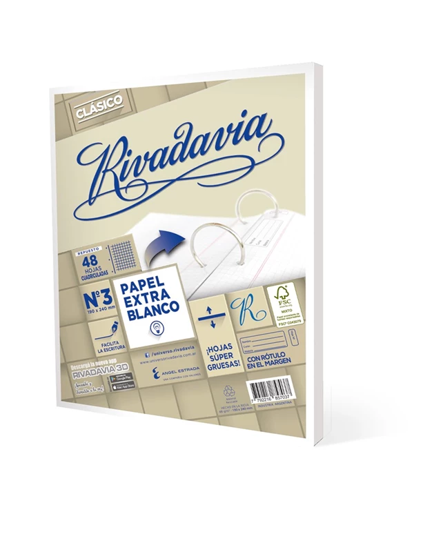 REPUESTO RIVADAVIA EXTRA BLANCO CLASICO S/B 48H CUADRICULADO (478523)