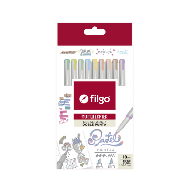 RESALTADOR FILGO MULTILIGHTER DOBLE PUNTA PASTEL X18U (MTLF-E18-PAS)